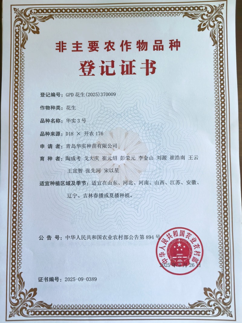 花成3号登记证书